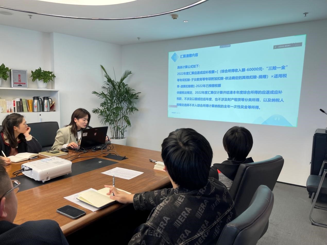 會(huì)上,財(cái)務(wù)部從個(gè)人所得稅匯算清繳內(nèi)容、如何區(qū)分是否匯算清繳、可享受稅前扣除、專項(xiàng)附加扣除信息填報(bào)錯(cuò)誤提醒、如何辦理匯算清繳五個(gè)方面進(jìn)行了詳細(xì)地講解。在答疑互動(dòng)環(huán)節(jié)中,與會(huì)人員就有疑問的事項(xiàng)積極提問,現(xiàn)場(chǎng)交流互動(dòng)頻繁,取得了良好的培訓(xùn)效果。